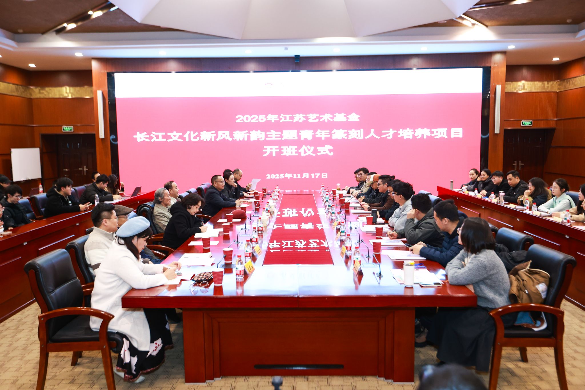 11月17日下午,2025年江苏艺术基金“长江文化新风新韵主题青年篆刻人才培养项目”开班仪式在我校仙林校区工科楼二楼会议室举行。校长程永波,党委常委、副校长叶林祥出席仪式。中国标准草书学社社长、南京印社名誉社长、南京艺术学院教授、博士生导师徐利明等嘉宾,我校党政办、党委宣传部、科学研究院、艺术教育中心等部门负责人,以及培训班全体学员、篆刻传承基地师生和书法篆刻专业研究生代表参加仪式。仪式由美育研究院院长段伟伟主持。